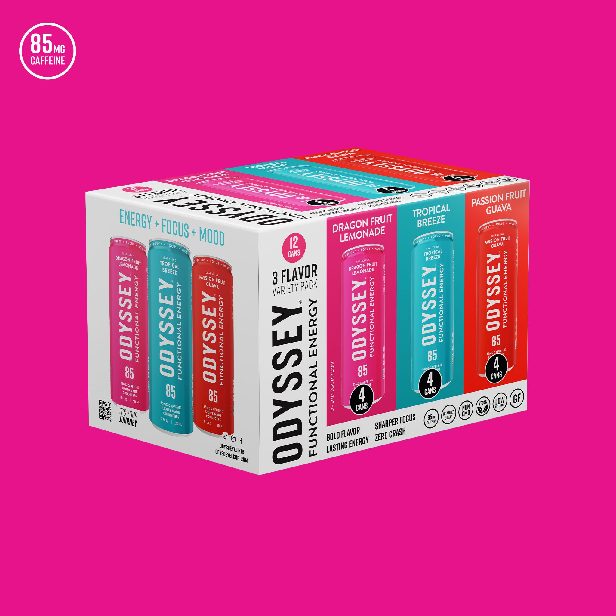 Not sure where to start? We’ve done the work for you. Paired with our top-performing flavors, our variety packs feature the best of both lines - 85MG of green tea caffeine for smooth, steady focus, and 222MG for bold, sustained energy. Sip, feel, and find your favorite. This is functional energy at its finest.